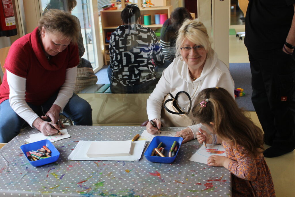 Dort war Zeit zum Spielen, Malen und Spaß haben. Die Großeltern bekamen einen Einblick in den Alltag ihres Enkelkindes in der Krippe. Sie kamen in Kontakt mit anderen Großeltern, tauschten sich aus und lernten sich untereinander und die Er-zieherinnen, die ihr Enkelkind betreuen, kennen.